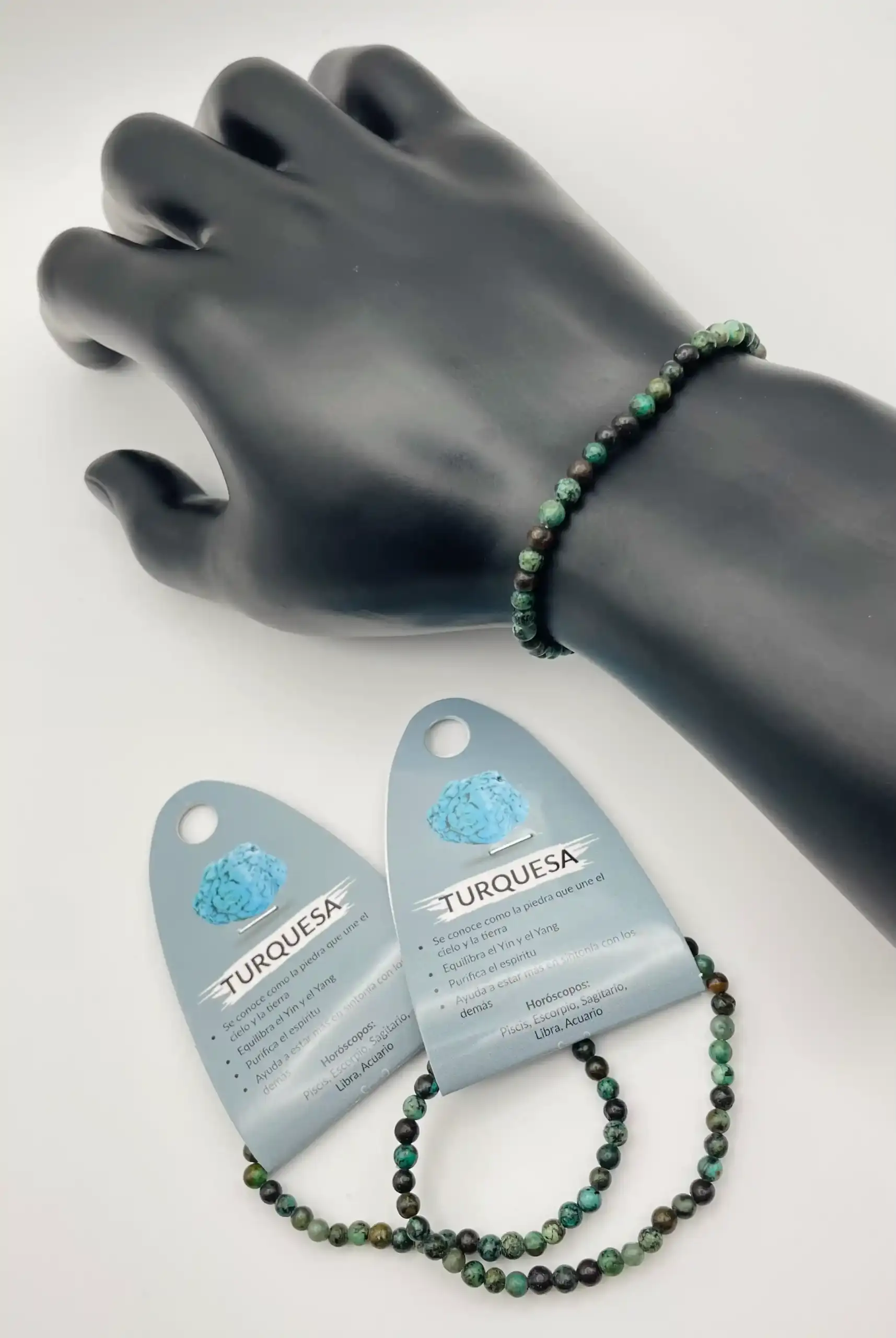 La turquesa africana se diferencia de la tradicional porque es un tipo de jaspe que se extrae del continente africano. Se utiliza como amuleto de protección, ayudando a disipar energías negativas y proporcionando equilibrio y calma emocional.