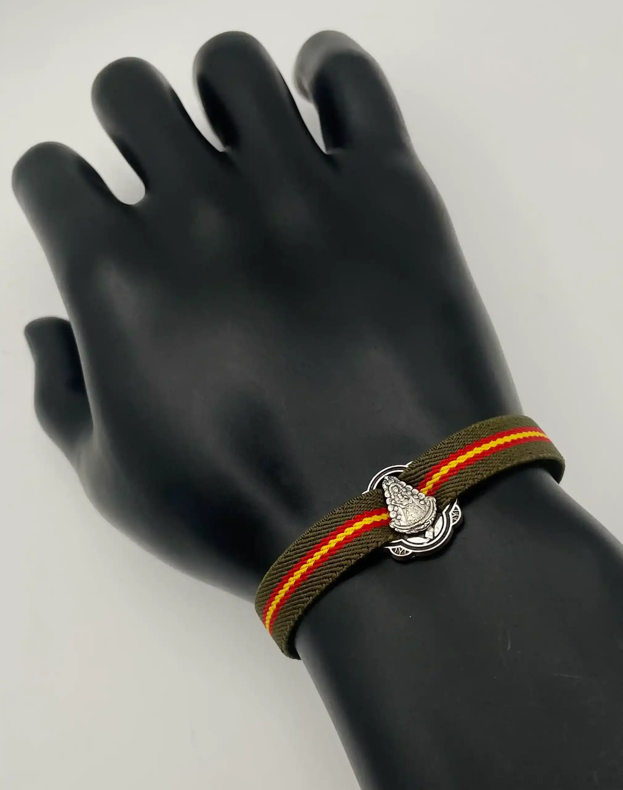 Pulsera Virgen Del Rocio Tela Elastica Verde Y Bandera De España