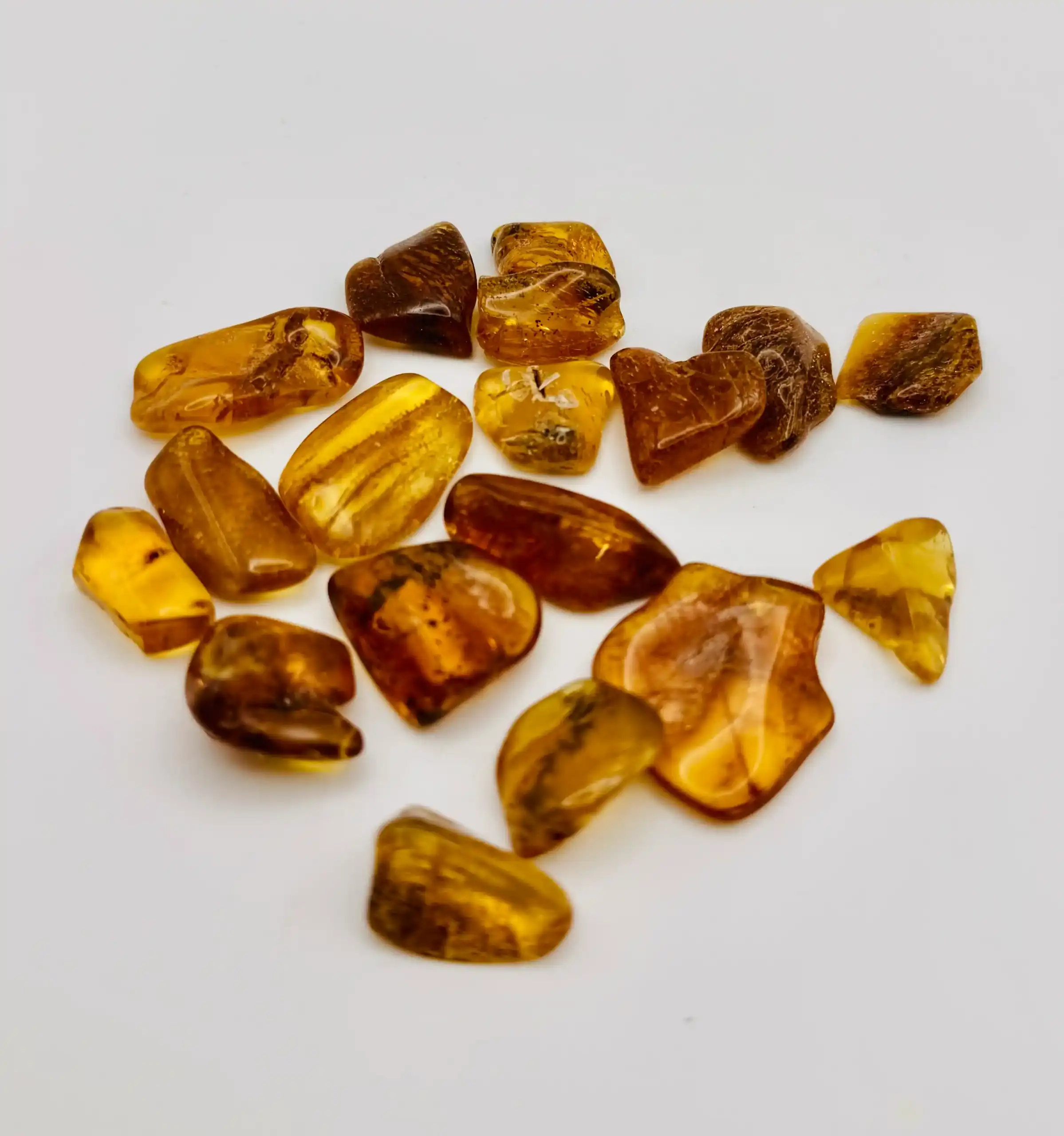 El ámbar es una resina fósil con propiedades curativas, como analgésicas y antiinflamatorias naturales, que se utiliza para calmar el estrés y la ansiedad, revitalizar el cuerpo y fortalecer el sistema inmunológico. Físicamente, es una gema semipreciosa de baja densidad (flota en agua salada) y dureza (2-2.5 en la escala de Mohs), que se presenta en diversos colores, principalmente amarillos y naranjas. Es valorado en joyería por su calidez y se usa como amuleto protector en diversas culturas.