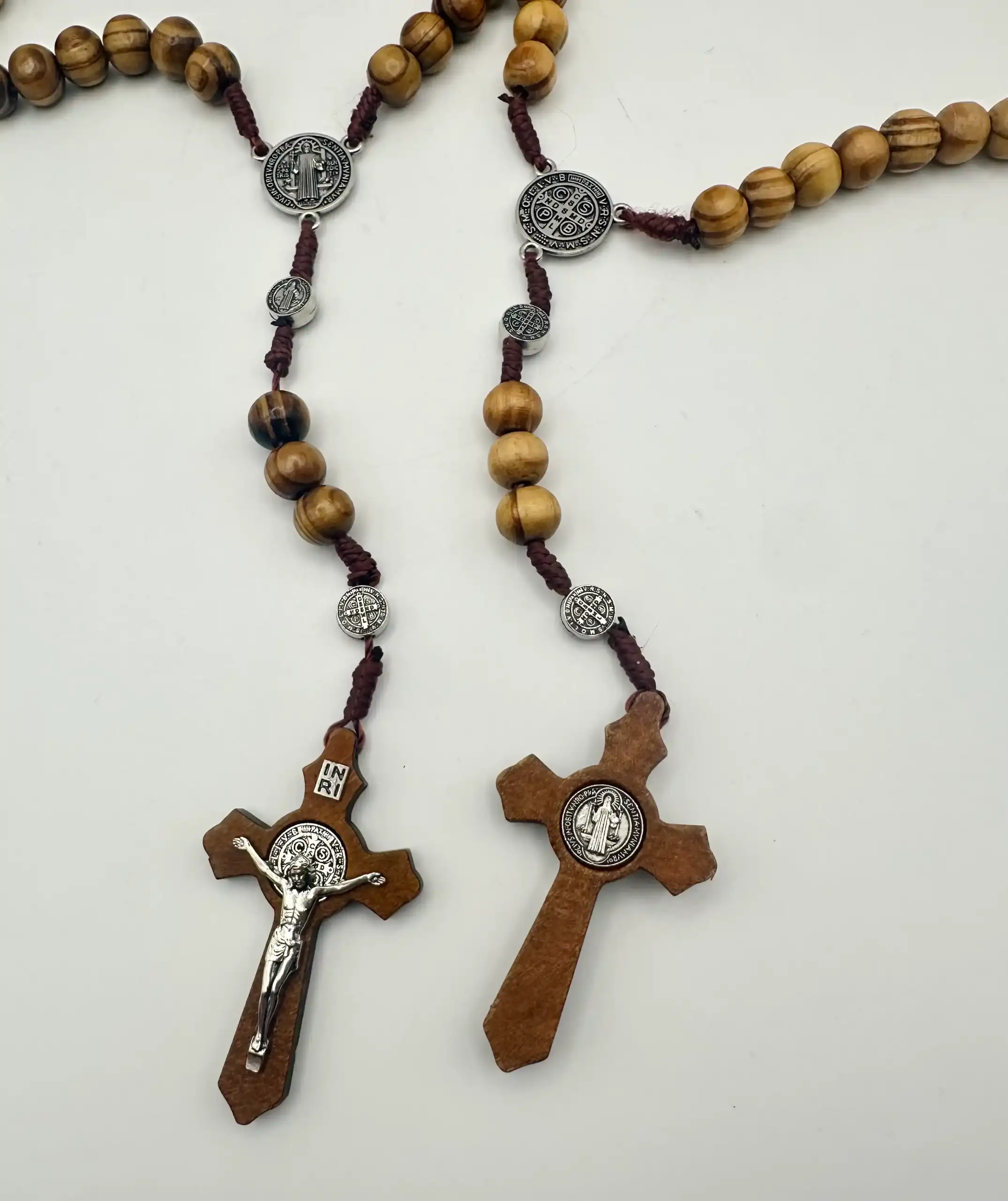 Rosario De Madera Cruz De Cristo Y Medalla De San Benito Modelo 2
