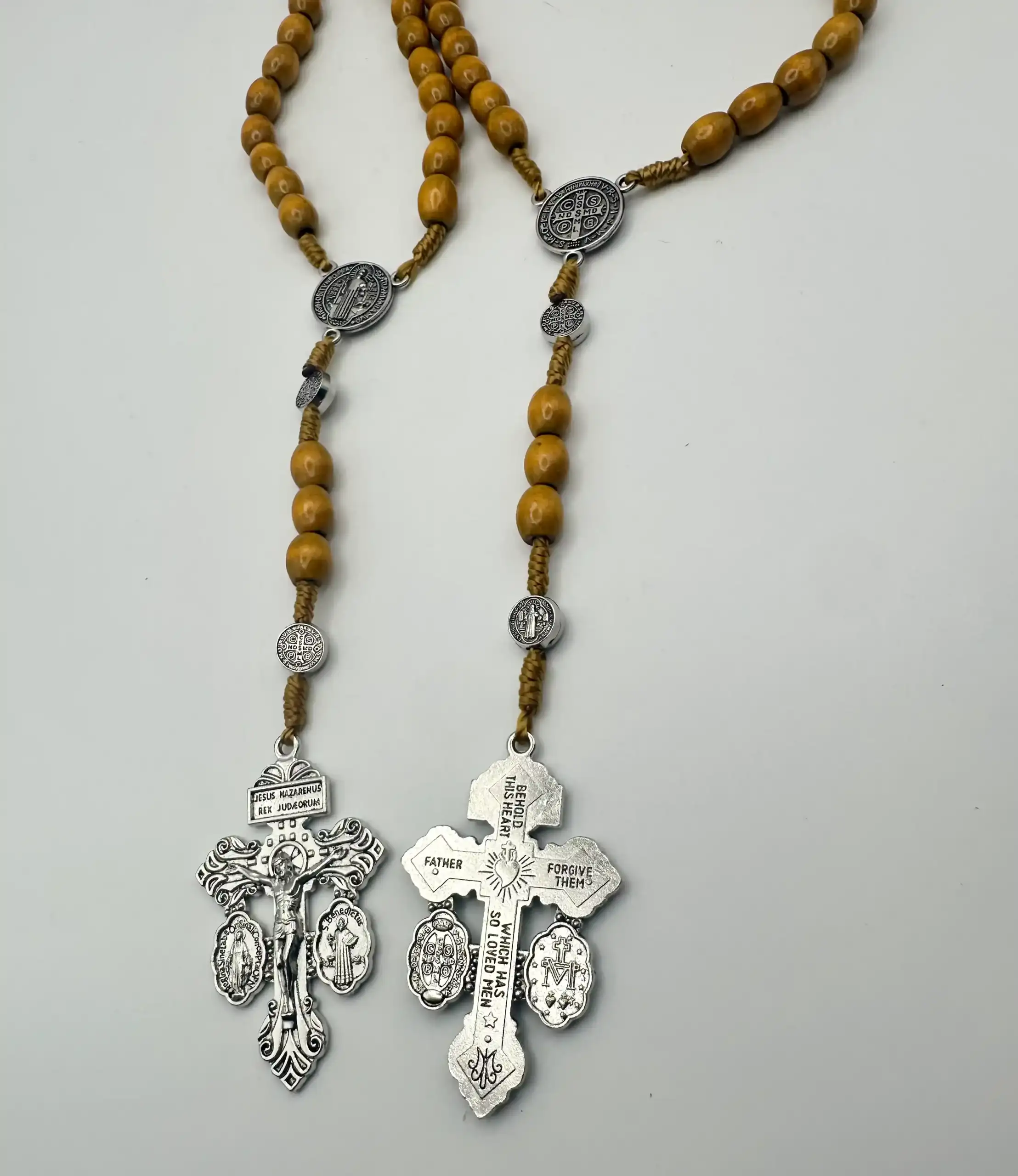 Rosario De Madera Cruz De Cristo Y Medalla De San Benito Modelo 3