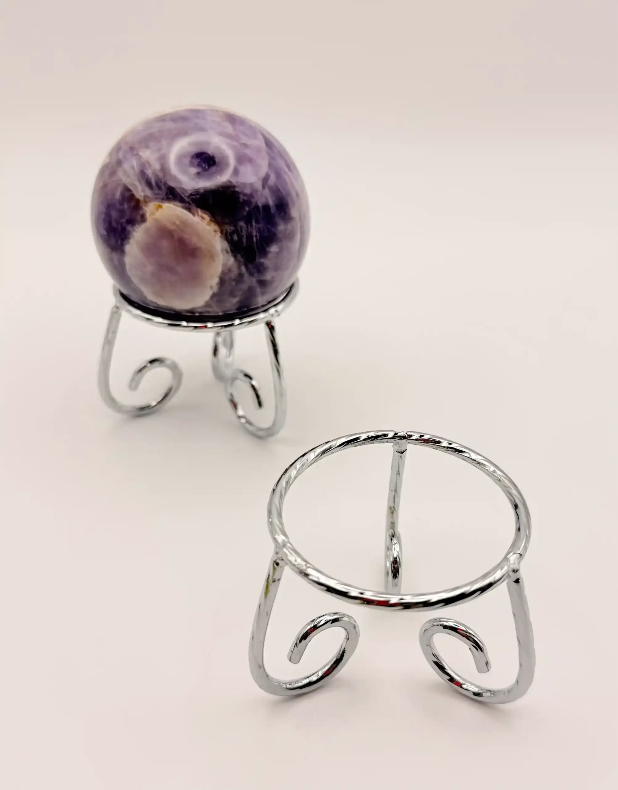 Soporte plateado con 3 patas para minerales de tamaño mediano.