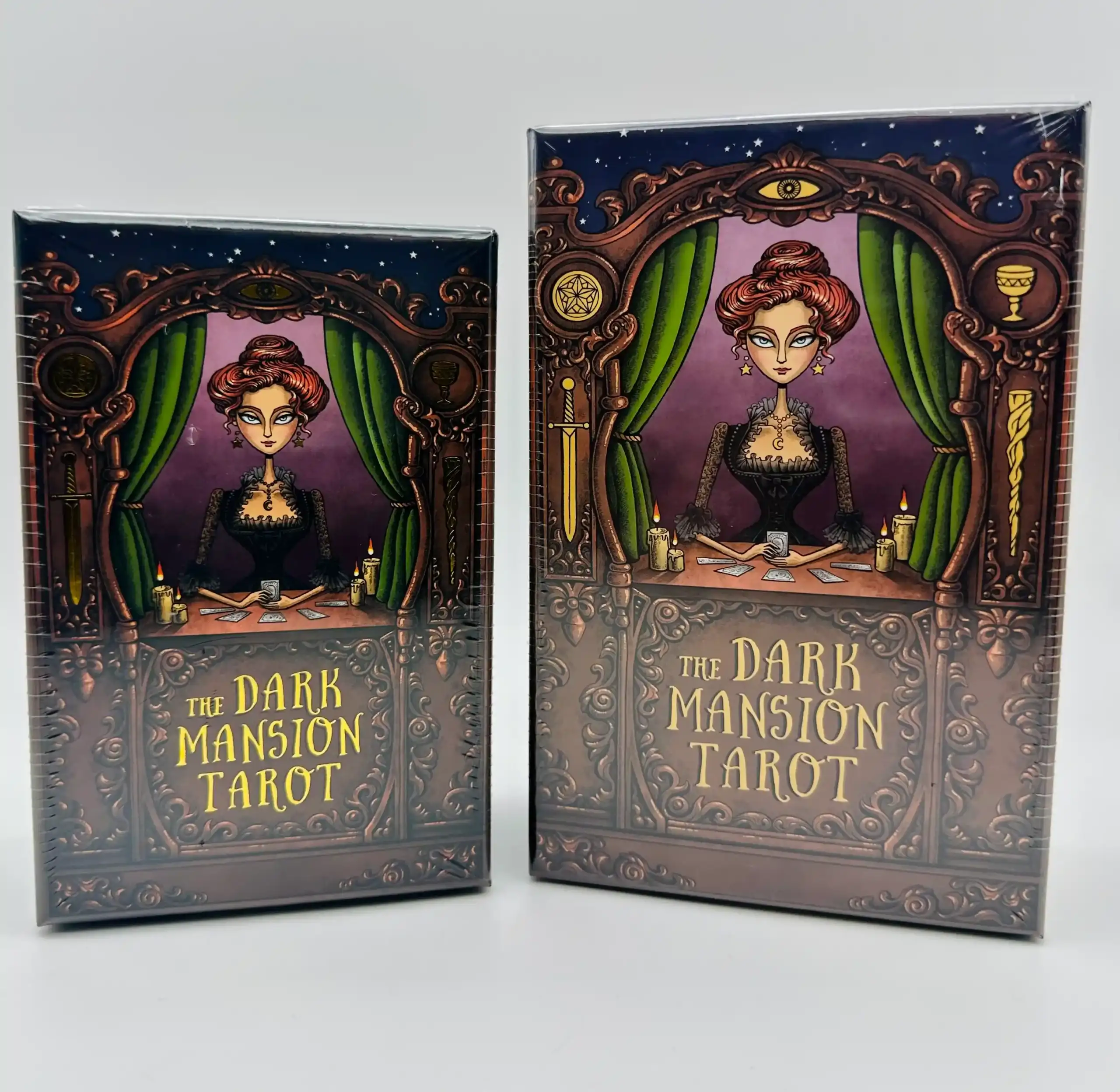 El Tarot Dark Mansion es un mazo de 78 cartas de tarot con un estilo de arte digital gótico y moderno, creado por Madalena Kaczan. Se basa en la estructura del tarot tradicional de Rider Waite, presentando ilustraciones detalladas y vibrantes con un aire de cuento de hadas oscuro.