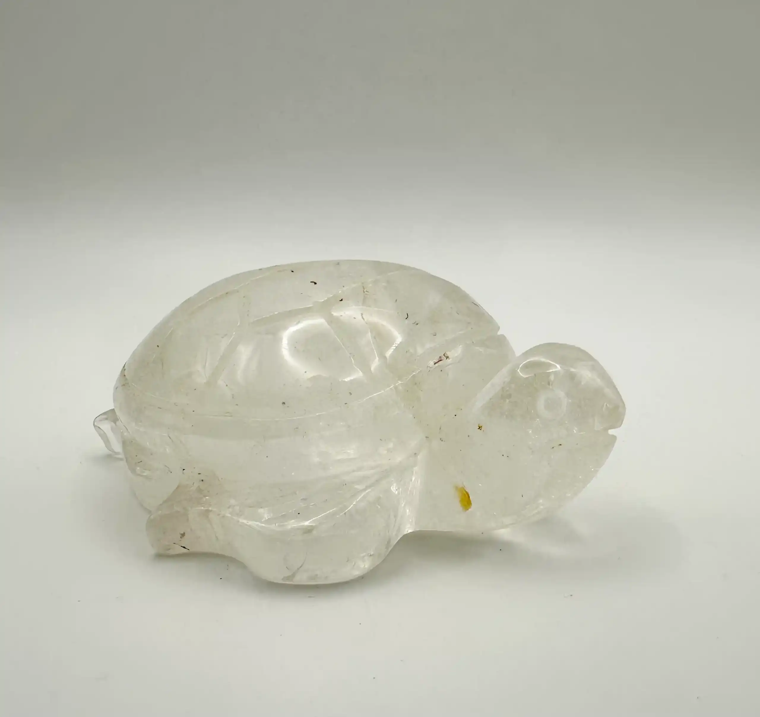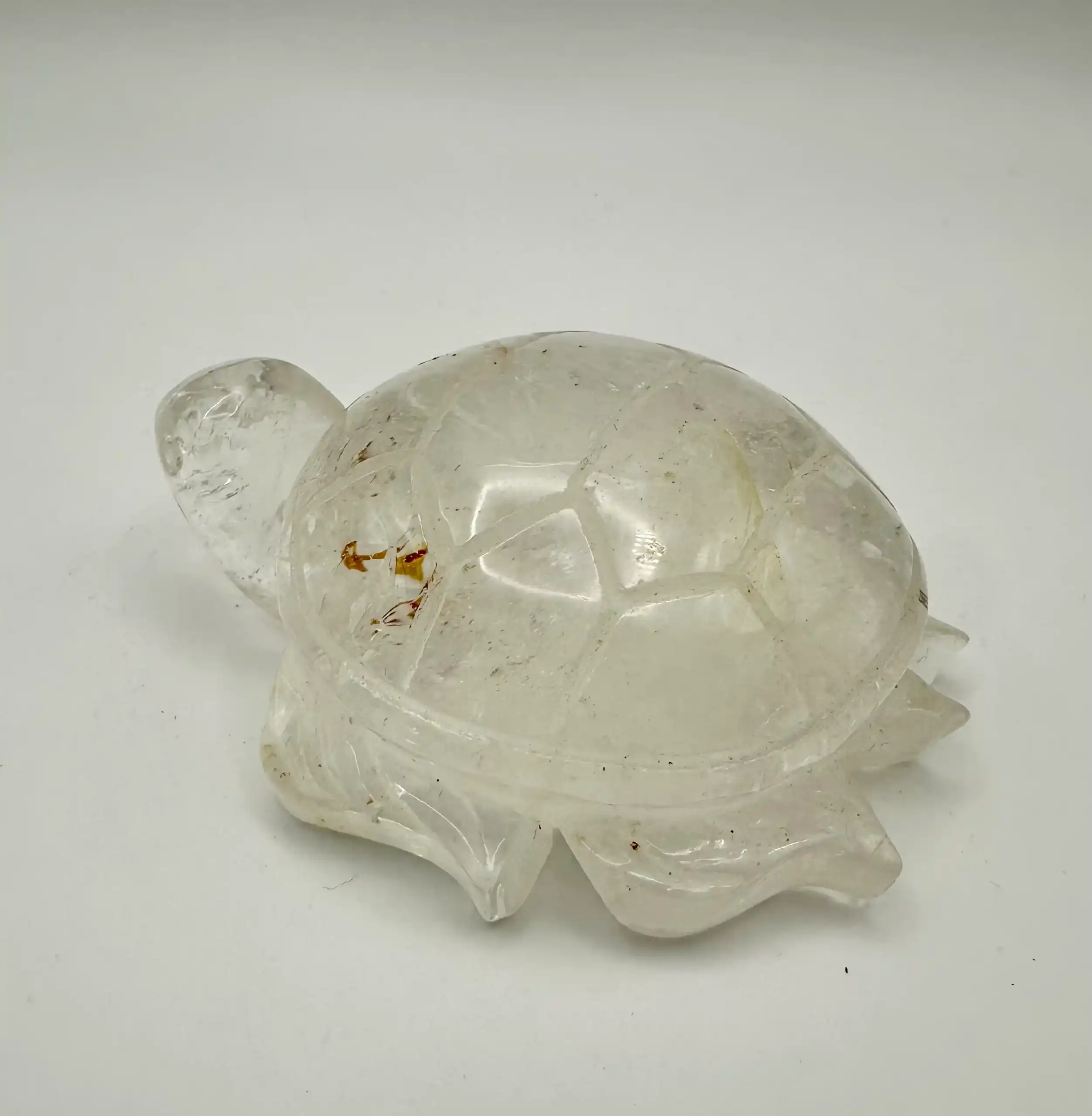 La tortuga de cuarzo cristal combina el simbolismo de la tortuga (longevidad, paciencia, estabilidad, sabiduría) con las propiedades del cuarzo cristal (purificación, armonía, claridad, amplificación de energía), creando un poderoso amuleto de Feng Shui para atraer buena suerte, prosperidad, equilibrio energético, protección contra malas vibras y longevidad, ideal para el hogar u oficina.