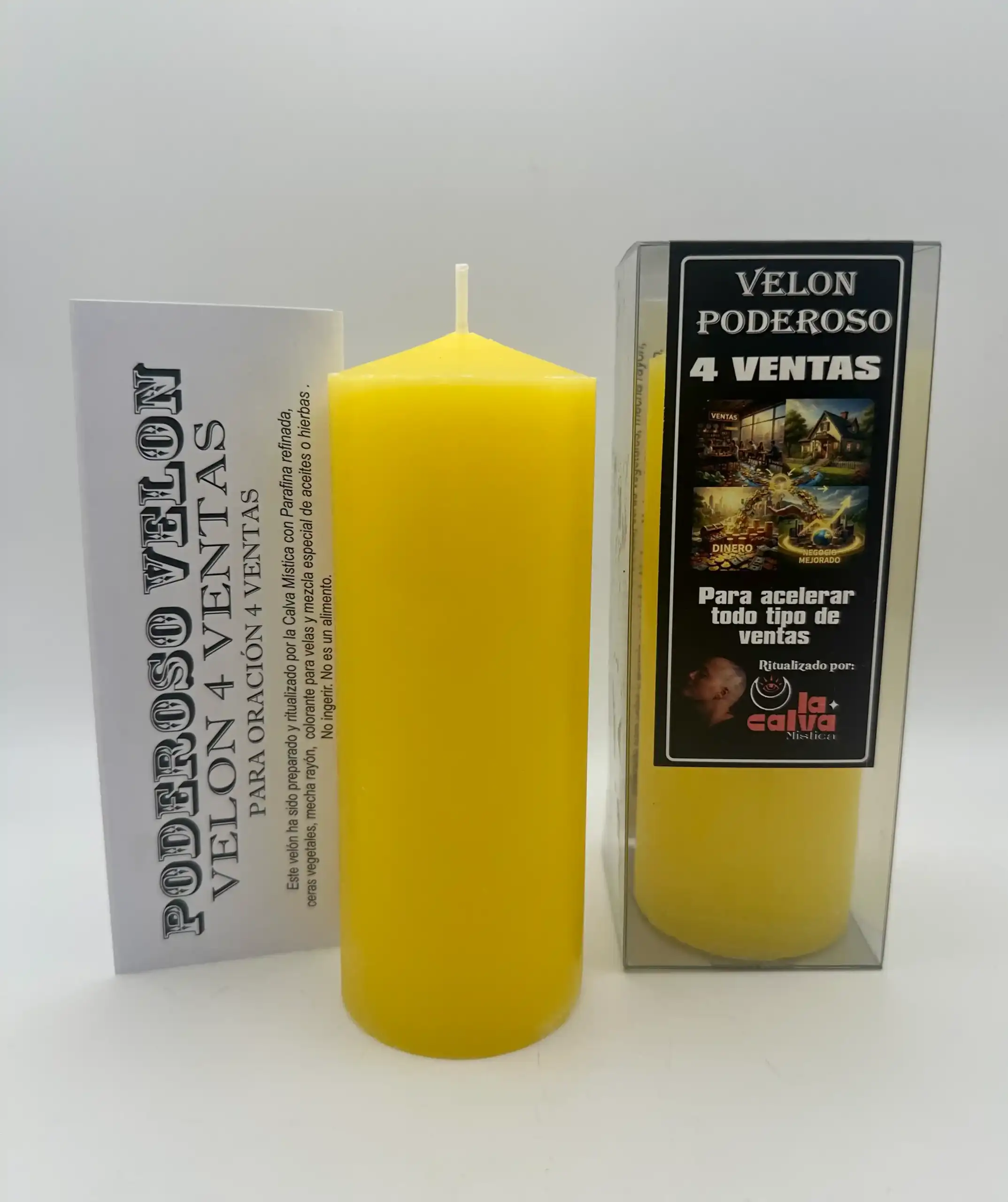 Este velón está ritualizado por La Calva Mística para acelerar cualquier tipo de venta, ya sea de un negocio, local, casa… Puede usarse también para aumentar las ventas, mejorar la comunicación con clientes, activar el movimiento del dinero y dar visibilidad a un negocio.