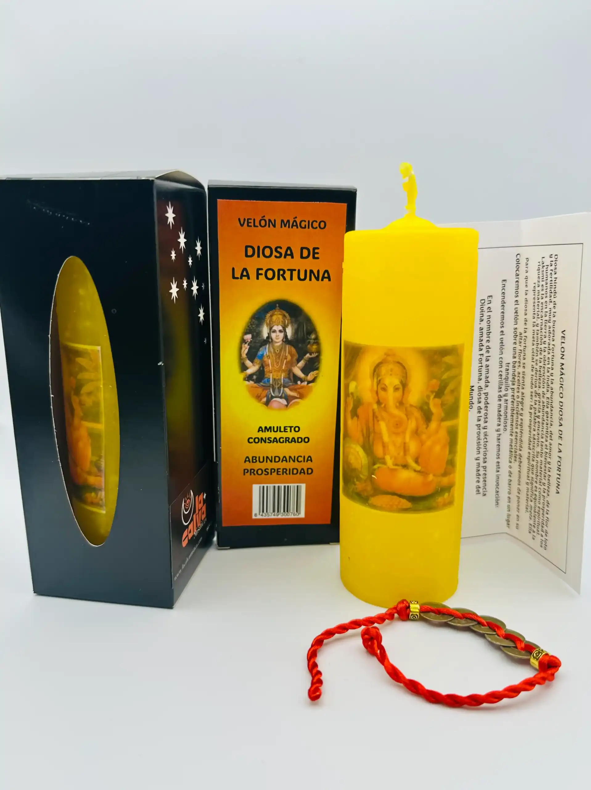 Velon magico a la diosa de la fortuna con amuleto consagrado, para la abundancia y prosperidad.