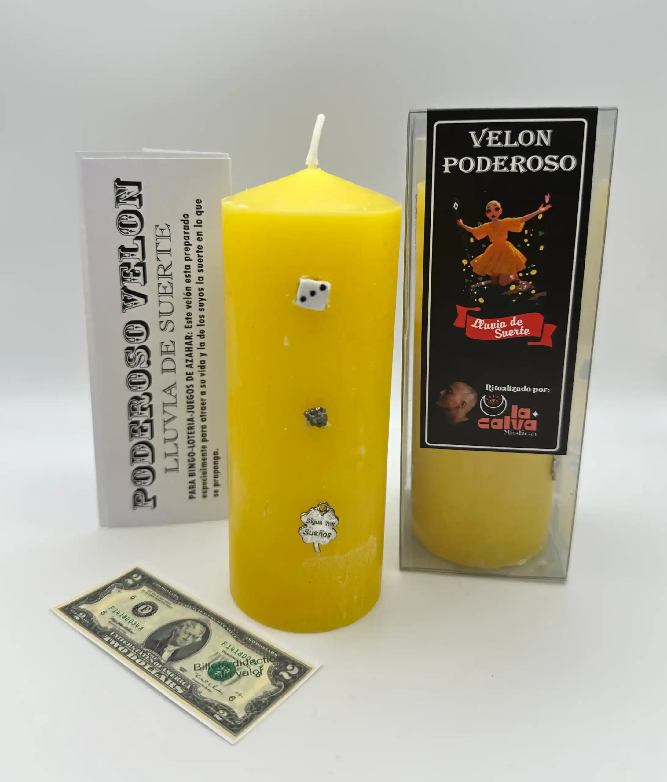 Velón ritualizado por la Calva Mística, elaborado para atraer buena suerte en cualquier ámbito de la vida.
