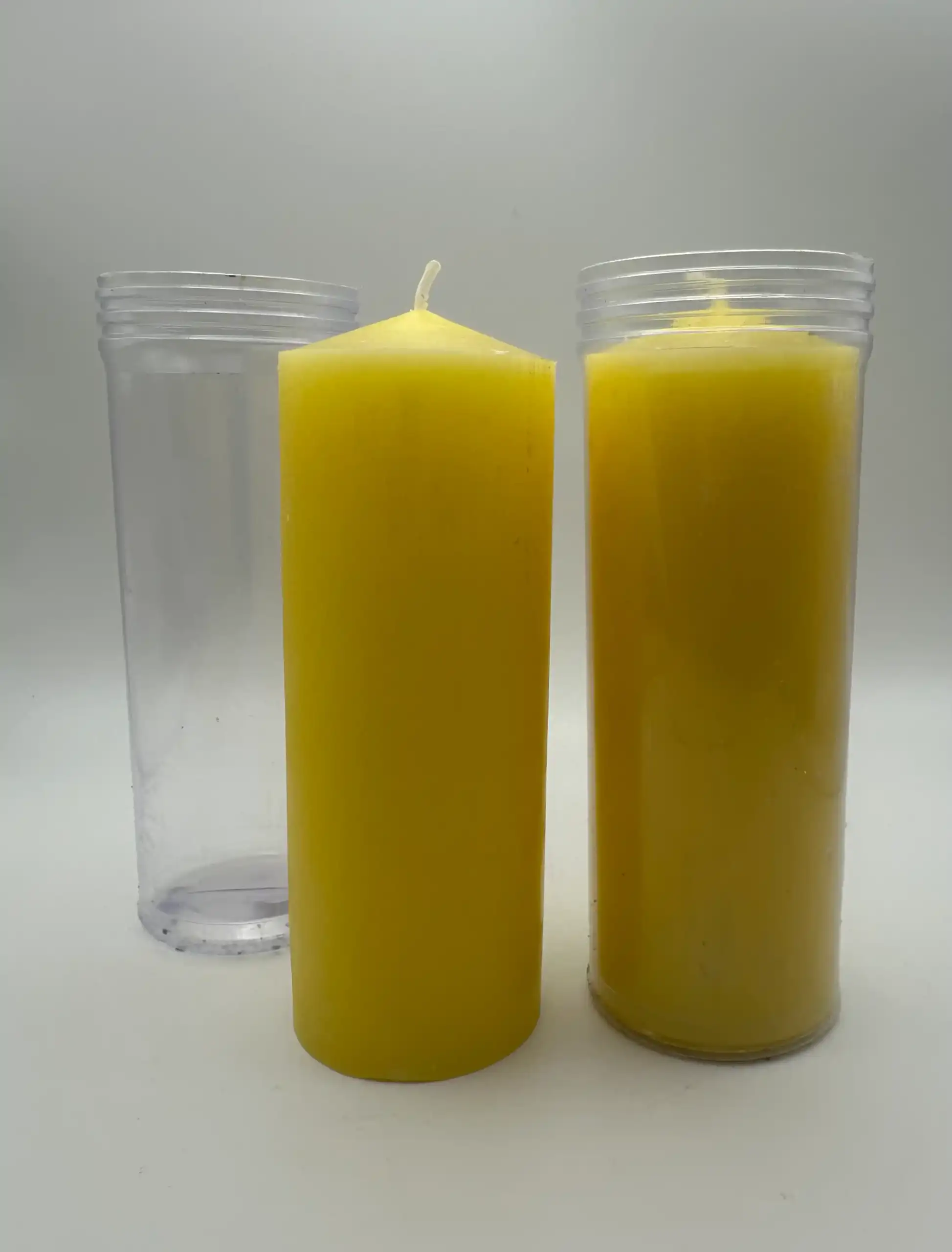 La vela amarilla se utiliza principalmente para prosperidad, éxito, claridad mental y apertura de caminos. El color amarillo se asocia con el sol, la inteligencia y la energía positiva. Puede usarse en rituales para atraer abundancia, buena suerte en asuntos materiales, estimula la creatividad, aumenta la confianza y elimina bloqueos en trabajo, dinero o estudios.
