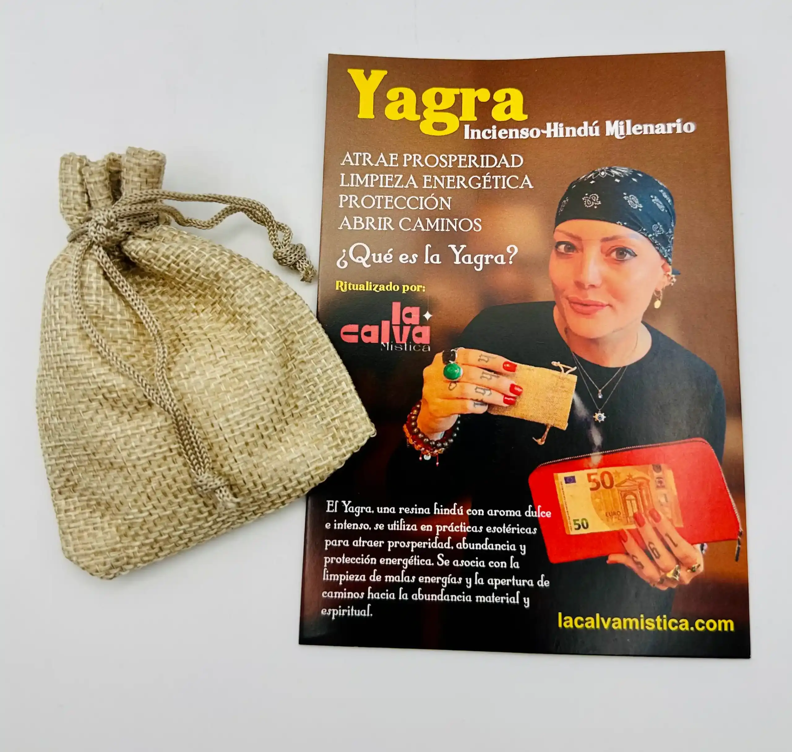 El Yagra es una resina hindú con aroma dulce e intenso, se utiliza en prácticas esotéricas para atraer prosperidad, abundancia y protección energética. Se asocia con la limpieza de malas energías y la apertura de caminos hacia la abundancia material y espiritual.